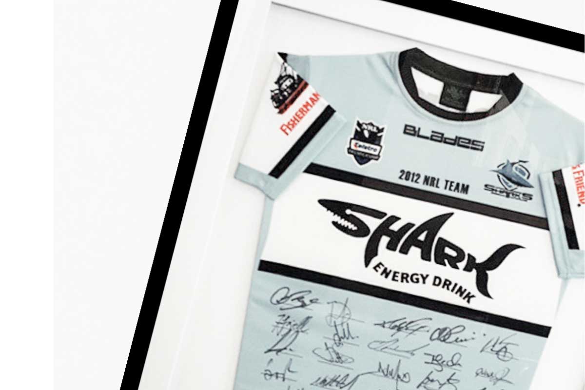 Framed memorabilia is a seriously cool way to display and show off sporting achievements – whether yours or someone else’s! Speak to Anne Marie at our Marsden Park store. With a background in photographic processing, she has a keen eye for attention to detail and has completed framing for jerseys, flags, UFC belts, boxing gloves and medals to name just a few. We encourage you to give the team a challenge and a chance to design something that says “wow!”.