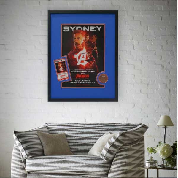 Movie posters shouldn’t be limited to teenage bedrooms, and film buffs will appreciate this exclusive “Avengers" memorabilia framing, complete with authentication wax. To incorporate key elements of the screening event, including the ticket stub, the frame features a custom matboard, cut in-house with millimetre precision on a computerised mat cutter.