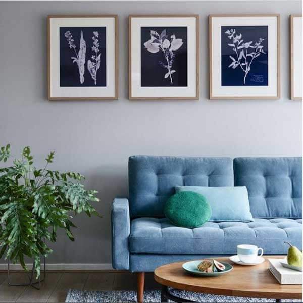 A monotone colour scheme best complements a modern room with a minimalist feel. Here, these Moda Italian Classic ready-made picture frames have been grouped to create a monotone look that blends in with the overall aesthetic of the room.